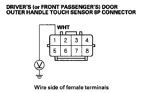 10. Measure the voltage between outer handle touch sensor 8P connector terminal No. 1 and body ground.