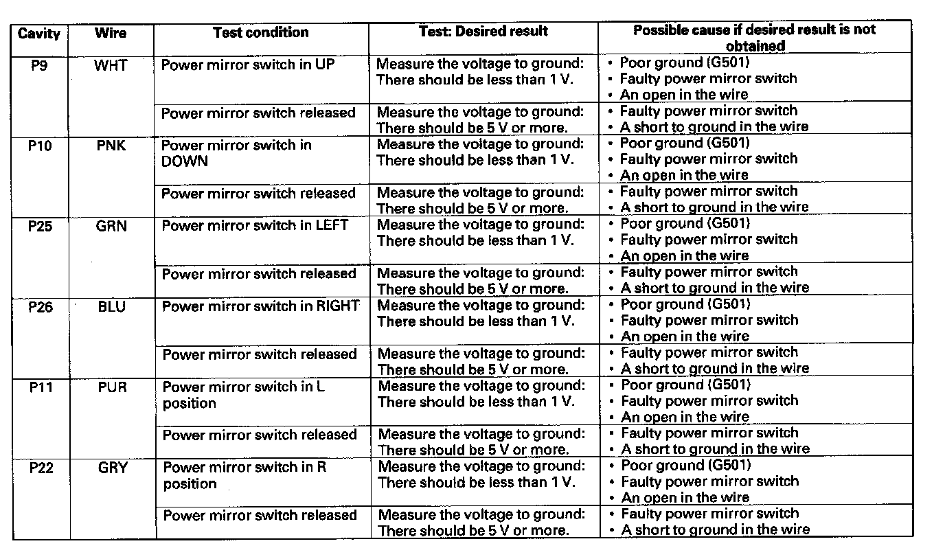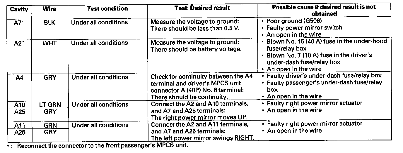 Power Mirror Circuit Input TestNOTE: Before testing, troubleshoot the multiplex integrated control system first using B-CAN System Diagnosis Test Mode A.