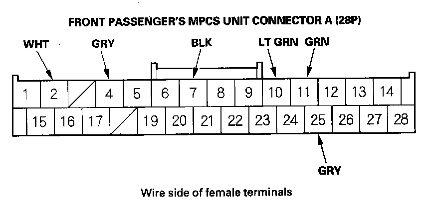 11. Disconnect front passenger's MPCS unit connector A (28P).