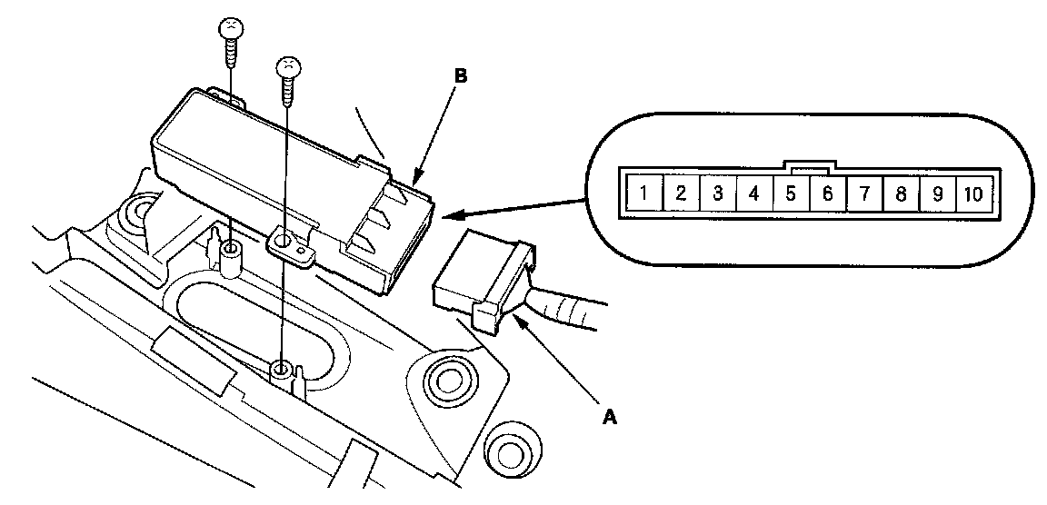 2. Disconnect the 10P connector (A) from the memory switch (B).