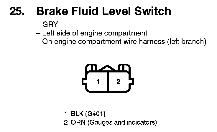 25. Brake Fluid Level Switch: