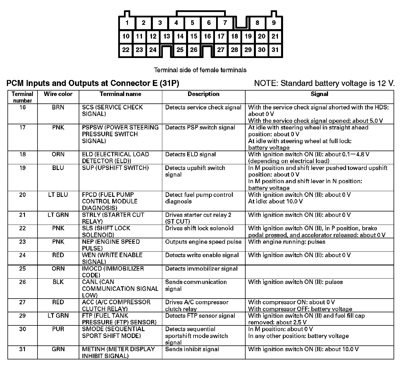 PCM Inputs And Outputs At Connector E (31P) (Part 2):