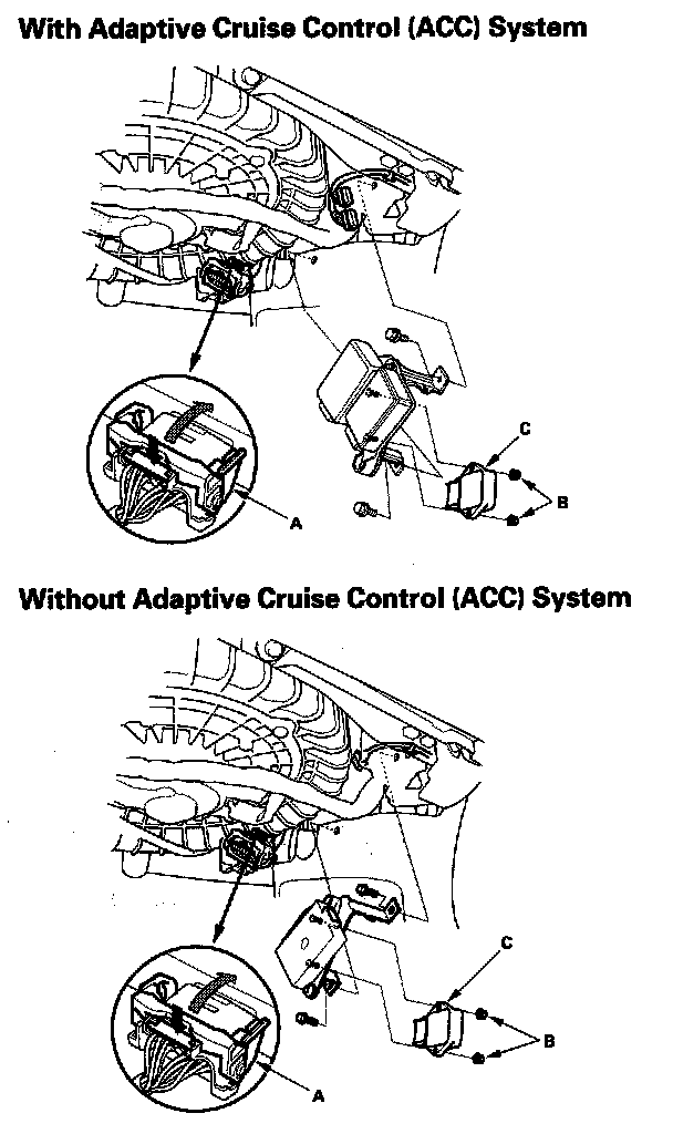3. Remove the Hands Free Link control unit and the adaptive cruise control (ACC) unit and its bracket (if equipped).
