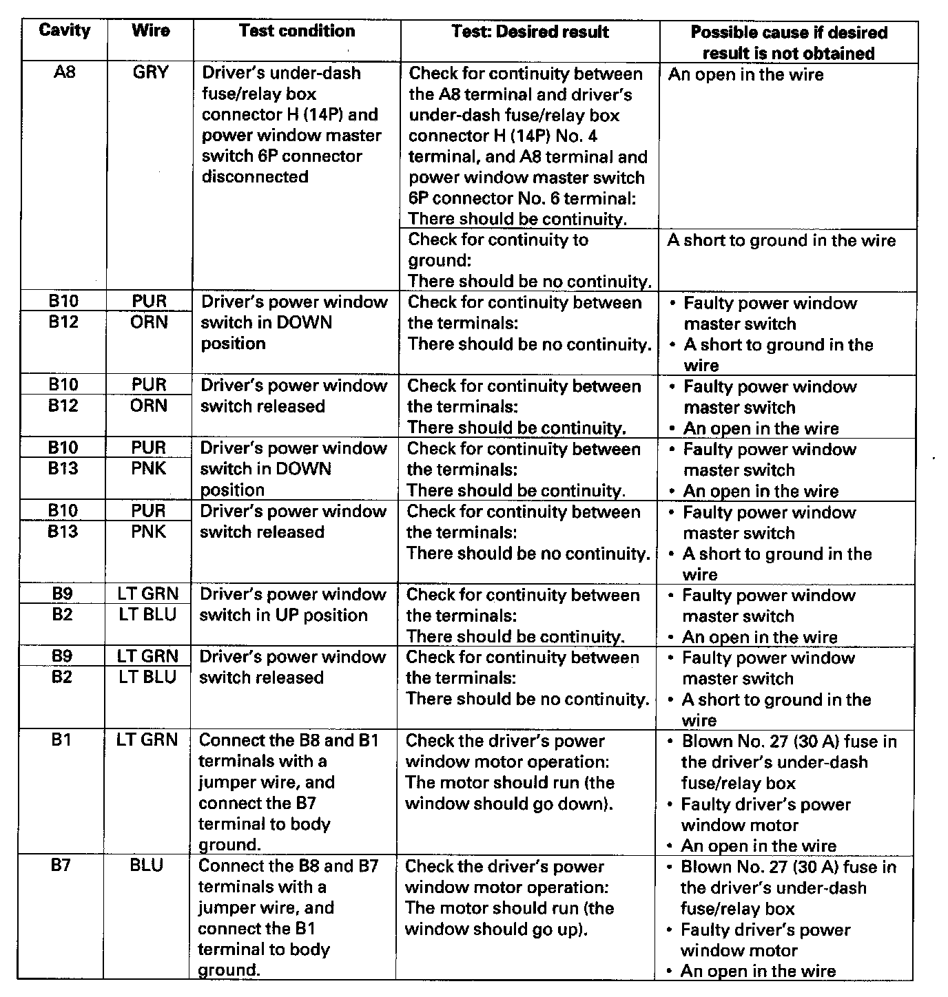 - If all the input tests prove OK, the control unit must be faulty; replace the driver's MPCS unit and go to step 7.