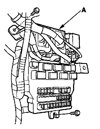 4. Disconnect the connectors from the fuse side of the under-dash fuse/relay box (A).