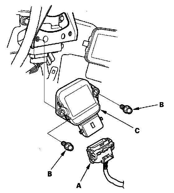 3. Remove the bolts (B), and the throttle actuator control module (C).