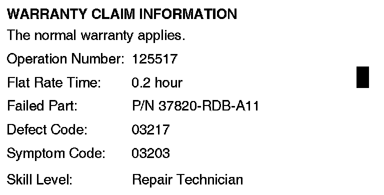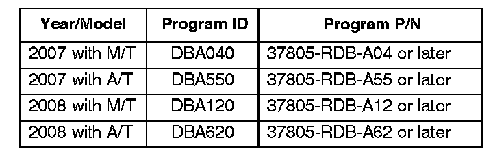 Update the PGM-FI software with the HDS. Refer to Service Bulletin 01-026, Updating Control Units/Modules.