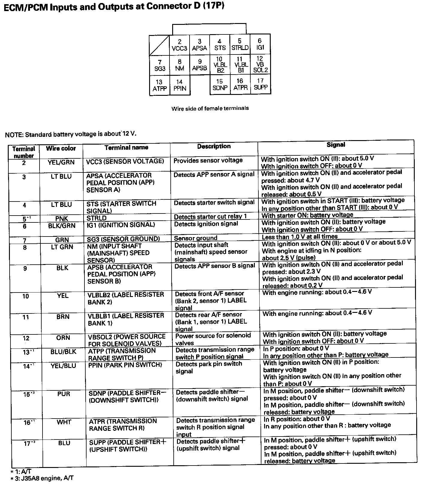 ECM/PCM Inputs And Outputs At Connector D (17P):