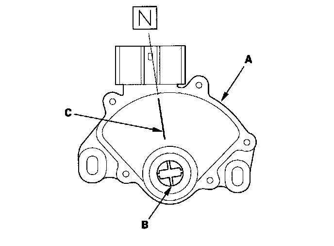 14. Set a new transmission range switch (A) to the N position. The transmission range switch clicks in the N position, and the control shaft hole (B) aligns with the N position line (C).