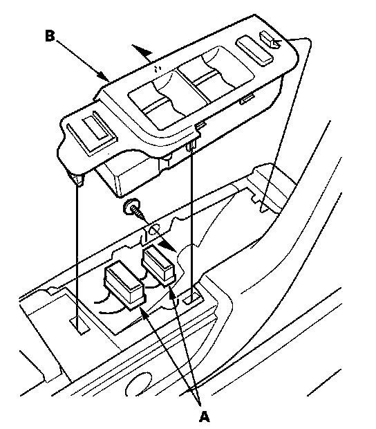 2. Remove the screw and disconnect the connectors (A) from the master switch (B), then remove the switch assembly from the door panel.