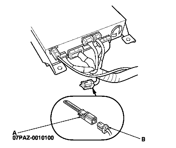 2. Connect the SCS service connector (A) to the navigation service connector (B) located behind the navigation unit.