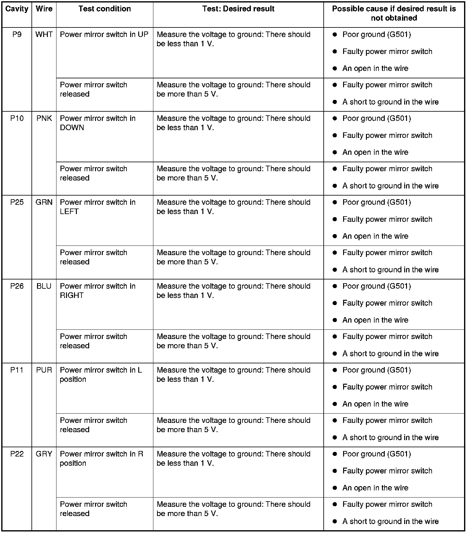 Driving Position Memory System (DPMS) Power Mirror Circuit Input Test