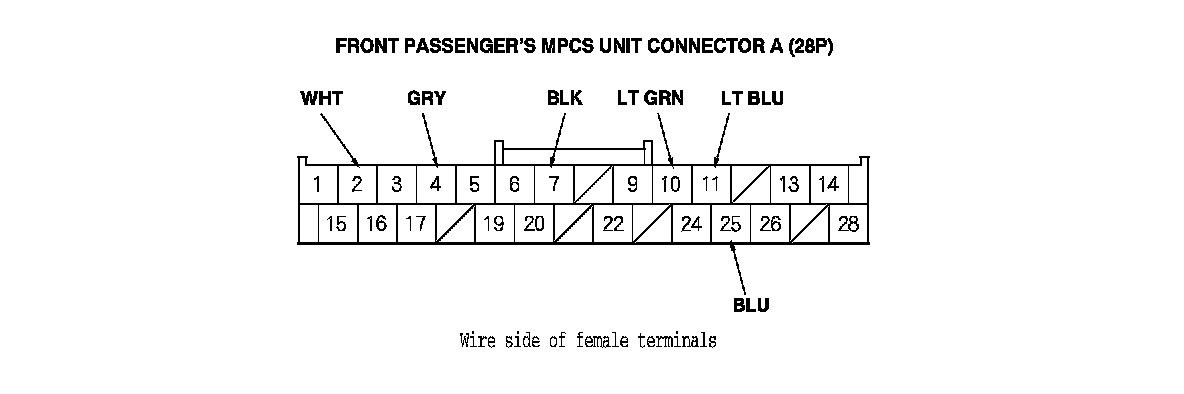 11. Disconnect the front passenger's MPCS unit connector A (28P).