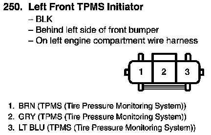 View 250 Left Front TPMS Initiator Connector View
