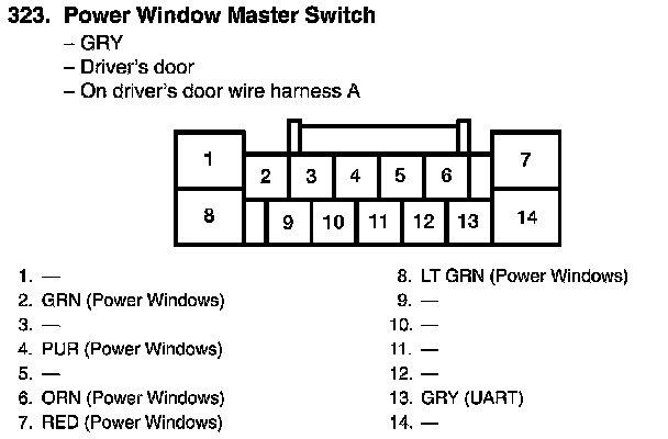 View 323 Power Window Master Switch Connector View