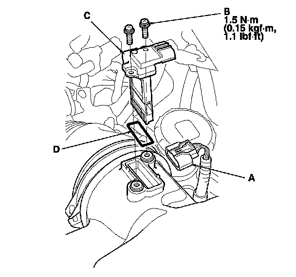 4. Install the parts in the reverse order of removal with a new gasket (D).
