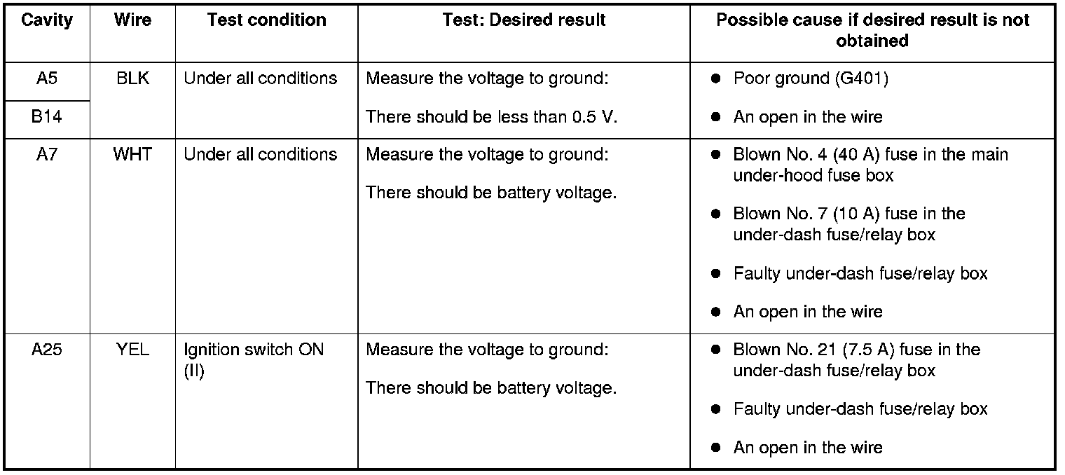 NOTE: Before testing the driver's MPCS unit, troubleshoot the multiplex integrated control unit first, using B-CAN System Diagnosis Test Mode A. Troubleshooting - B-CAN System Diagnosis Test Mode A