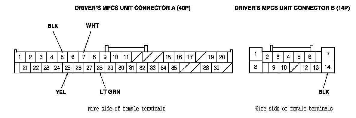 3. Disconnect driver's MPCS unit connectors A (40P) and B (14P).