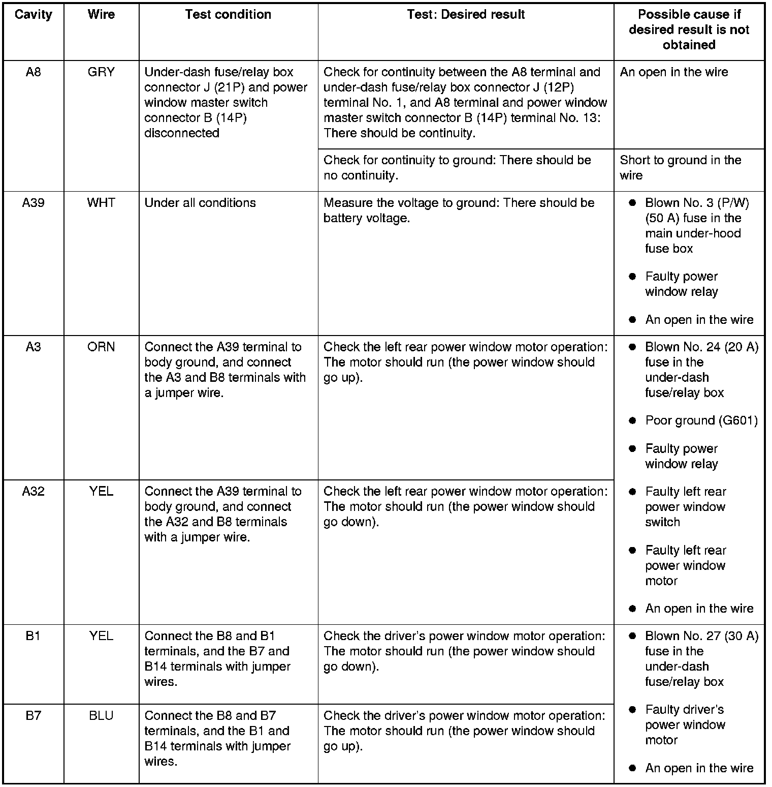 6. Reconnect the connectors, and do these input tests at the following connectors.