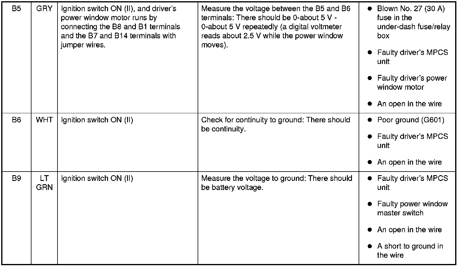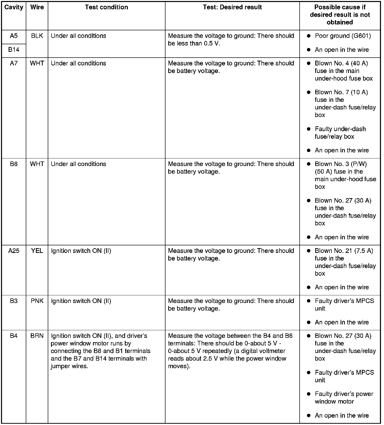 - If all the input tests prove OK, replace the driver's MPCS unit, then go to step 7.