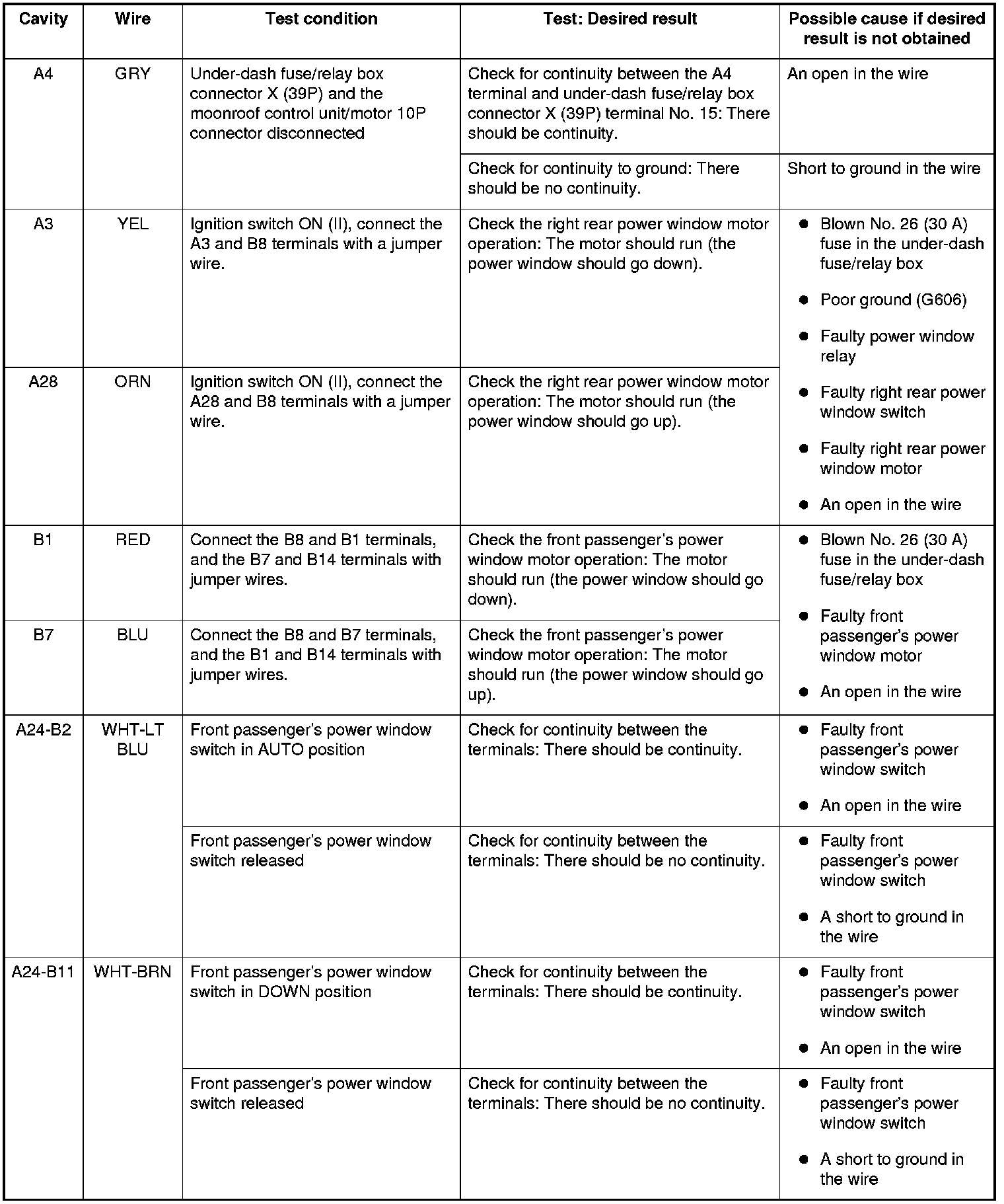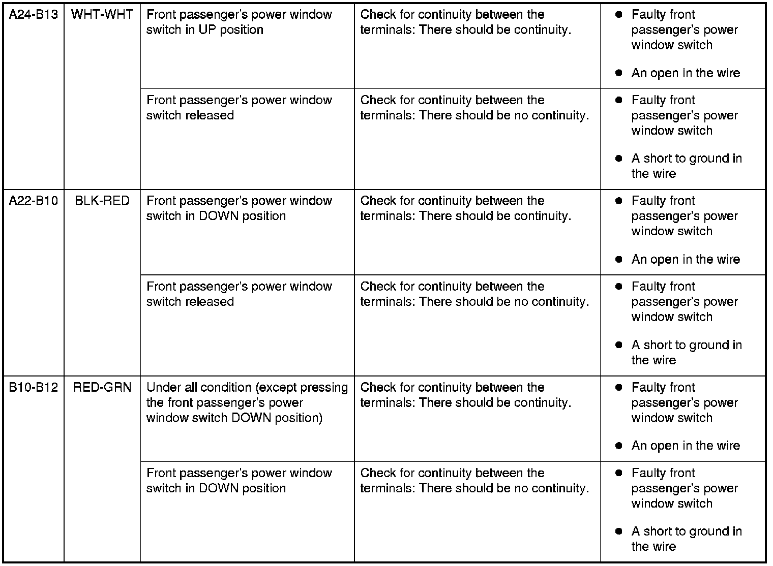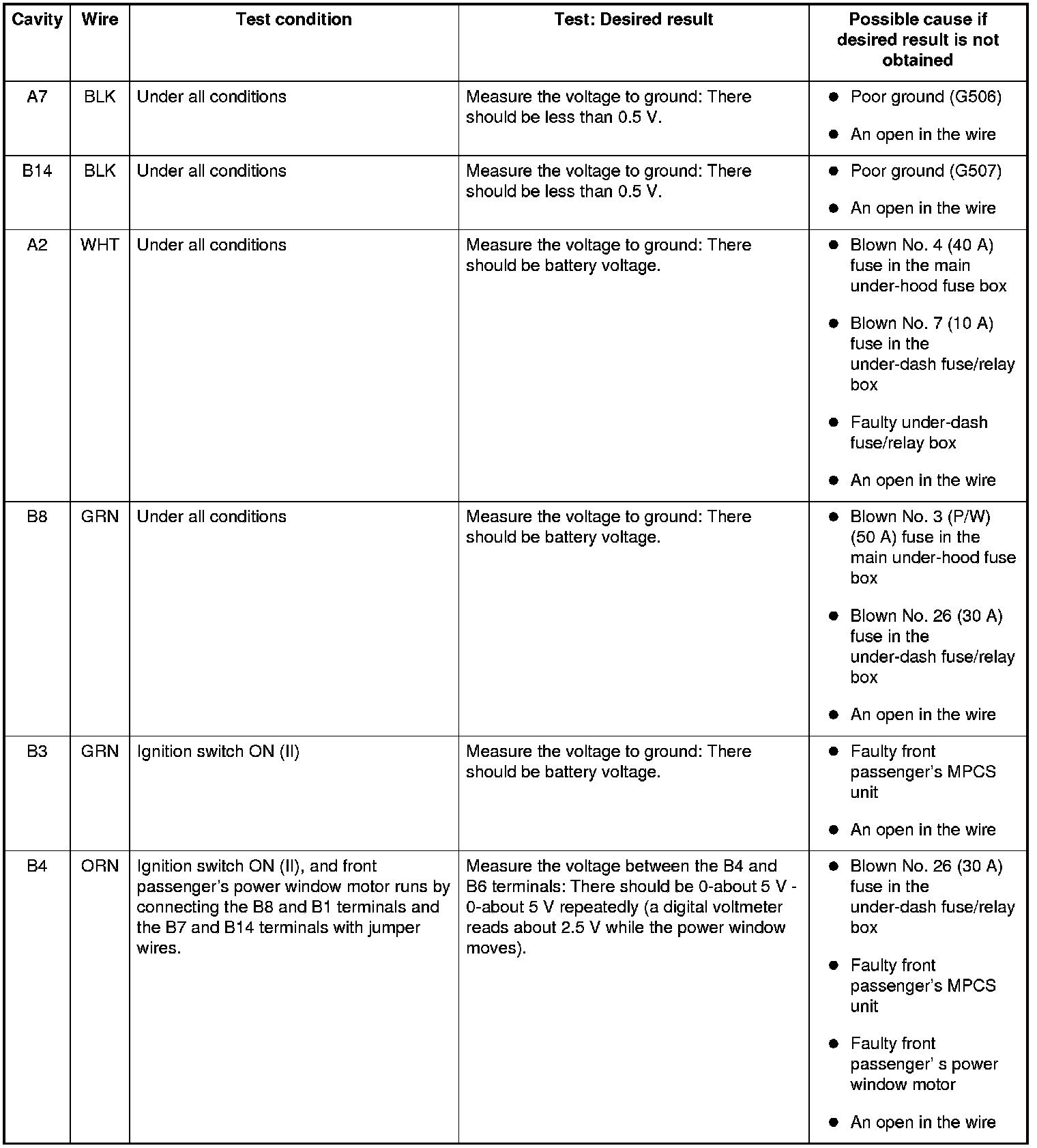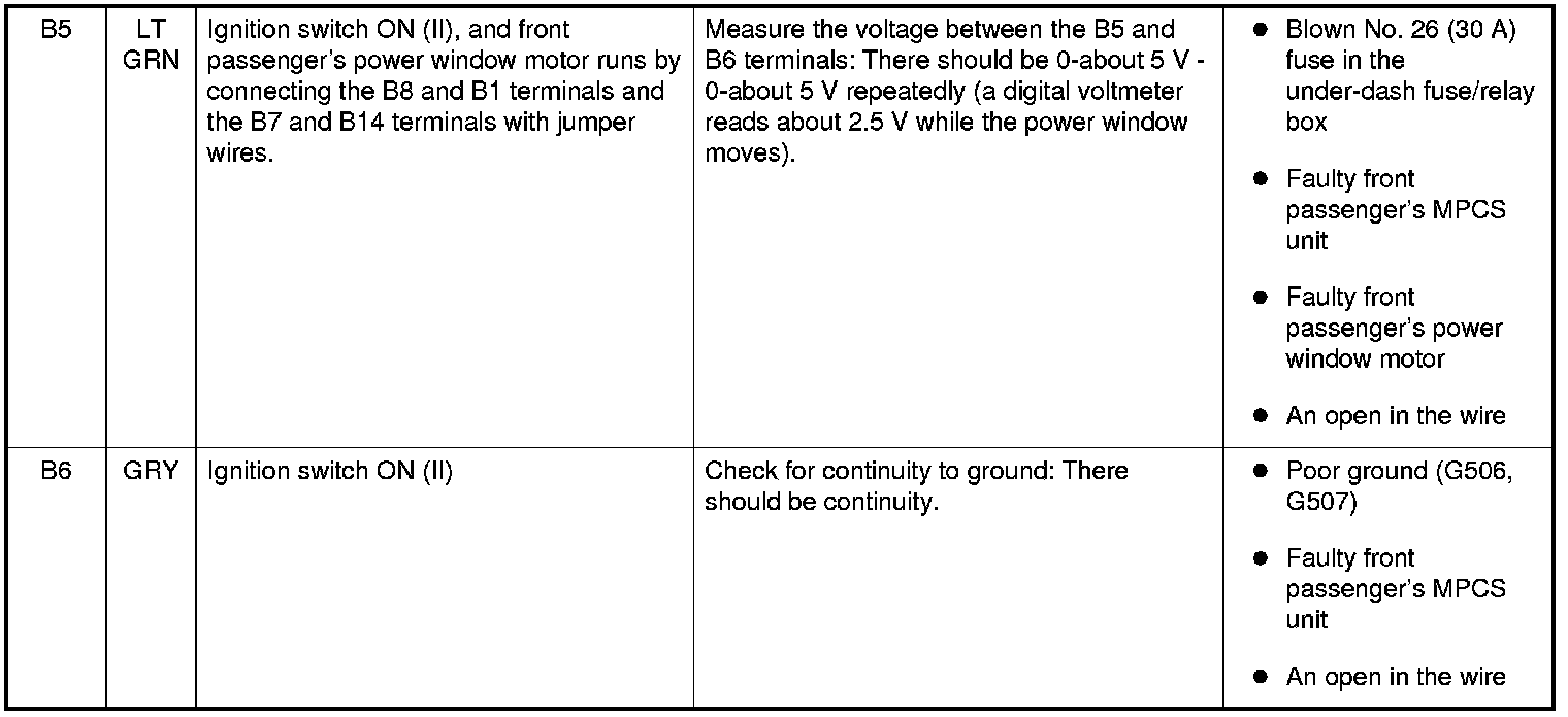 Power Windows Front Passenger's MPCS Unit Input Test