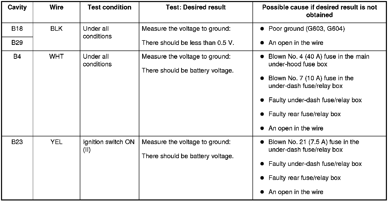 NOTE: Before testing the rear MICU, troubleshoot the multiplex integrated control unit first, using B-CAN System Diagnosis Test Mode A. Troubleshooting - B-CAN System Diagnosis Test Mode A