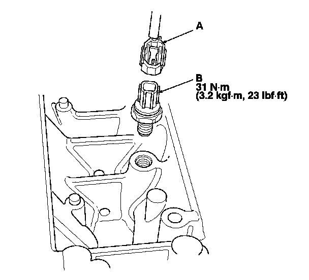 3. Disconnect the knock sensor 1P connector (A), then remove the knock sensor (B).