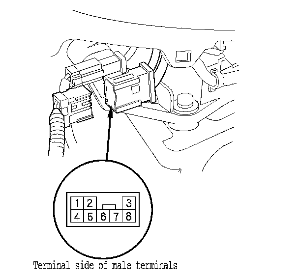 5. Check for continuity between connector terminals No. 8 and No. 2.