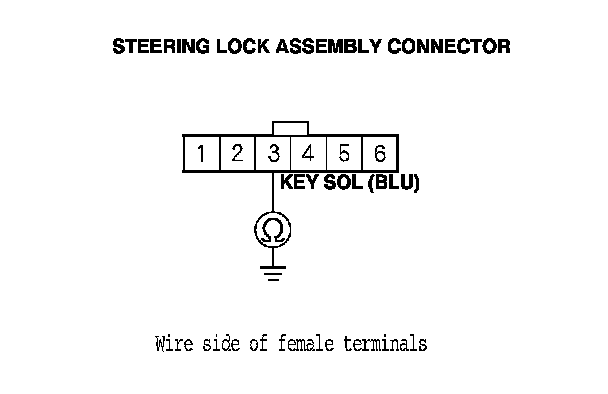6. Check for continuity between steering lock assembly connector terminal No. 3 and body ground.