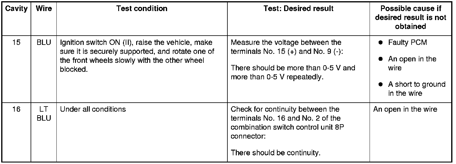 5. Reconnect the connector, turn the ignition switch to ON (II), and do these input tests at the following connector.