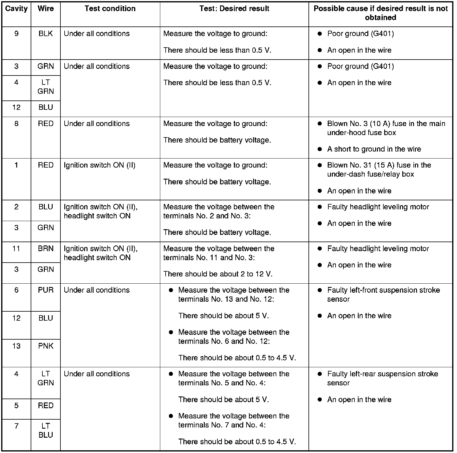 - If all the input tests prove OK, replace the headlight leveling control unit.
