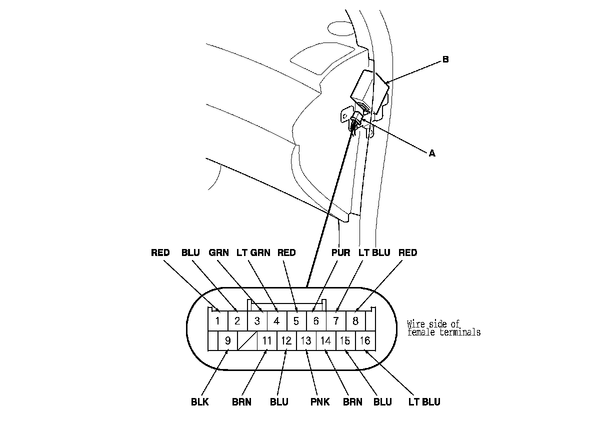 2. Disconnect the 16P connector (A) from the headlight leveling control unit (B).