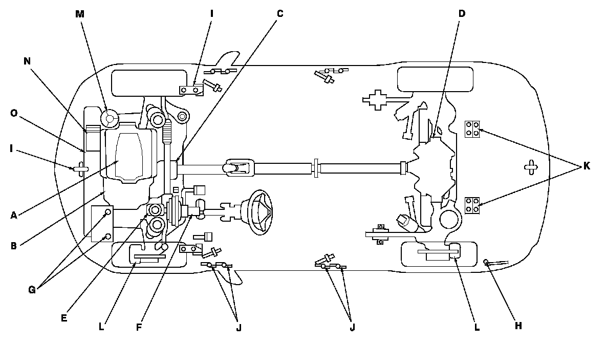 - Lubricate the following areas using the recommended lubricants and fluids.