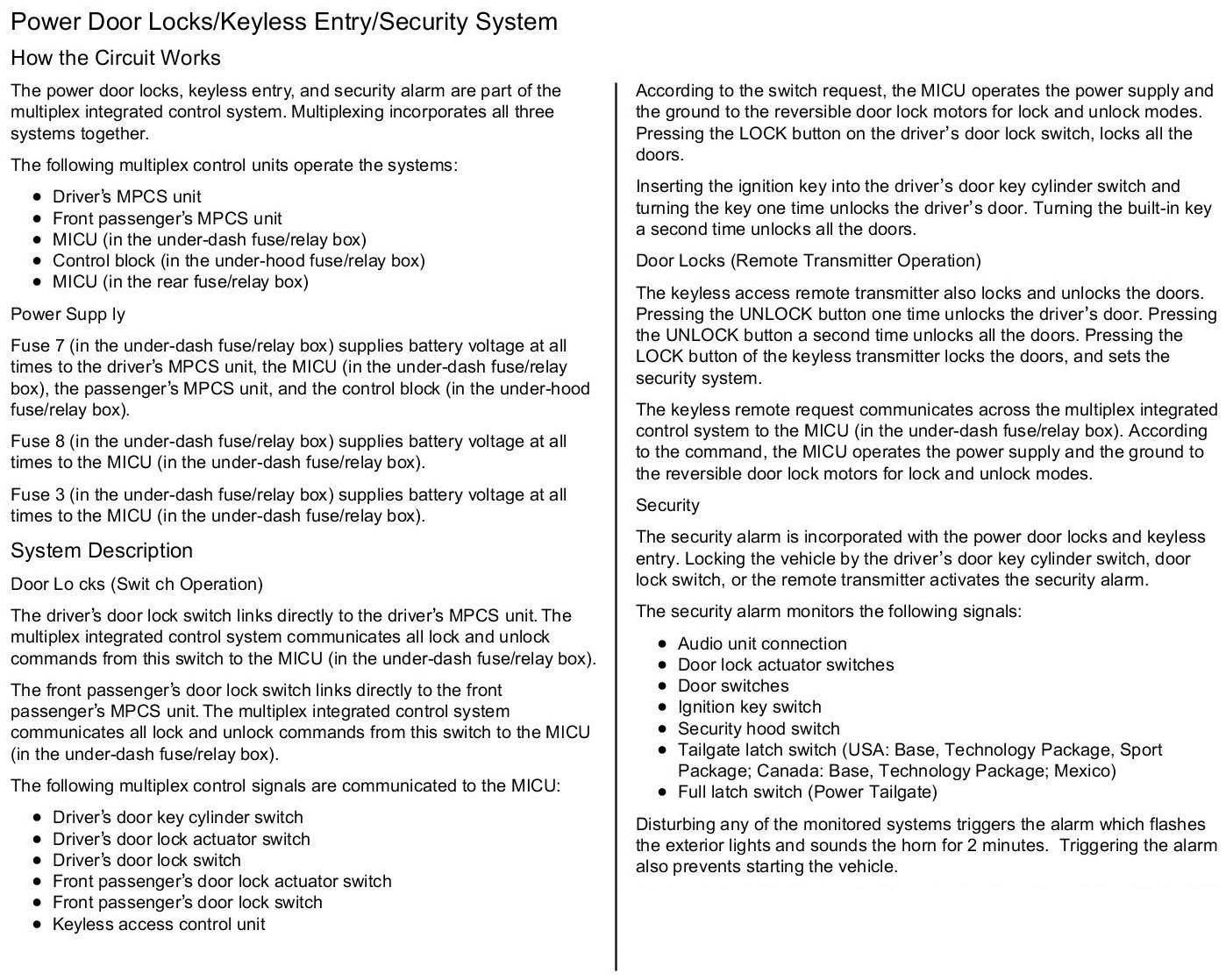 How the Power Door Locks/Keyless Entry/Security System Circuit Works