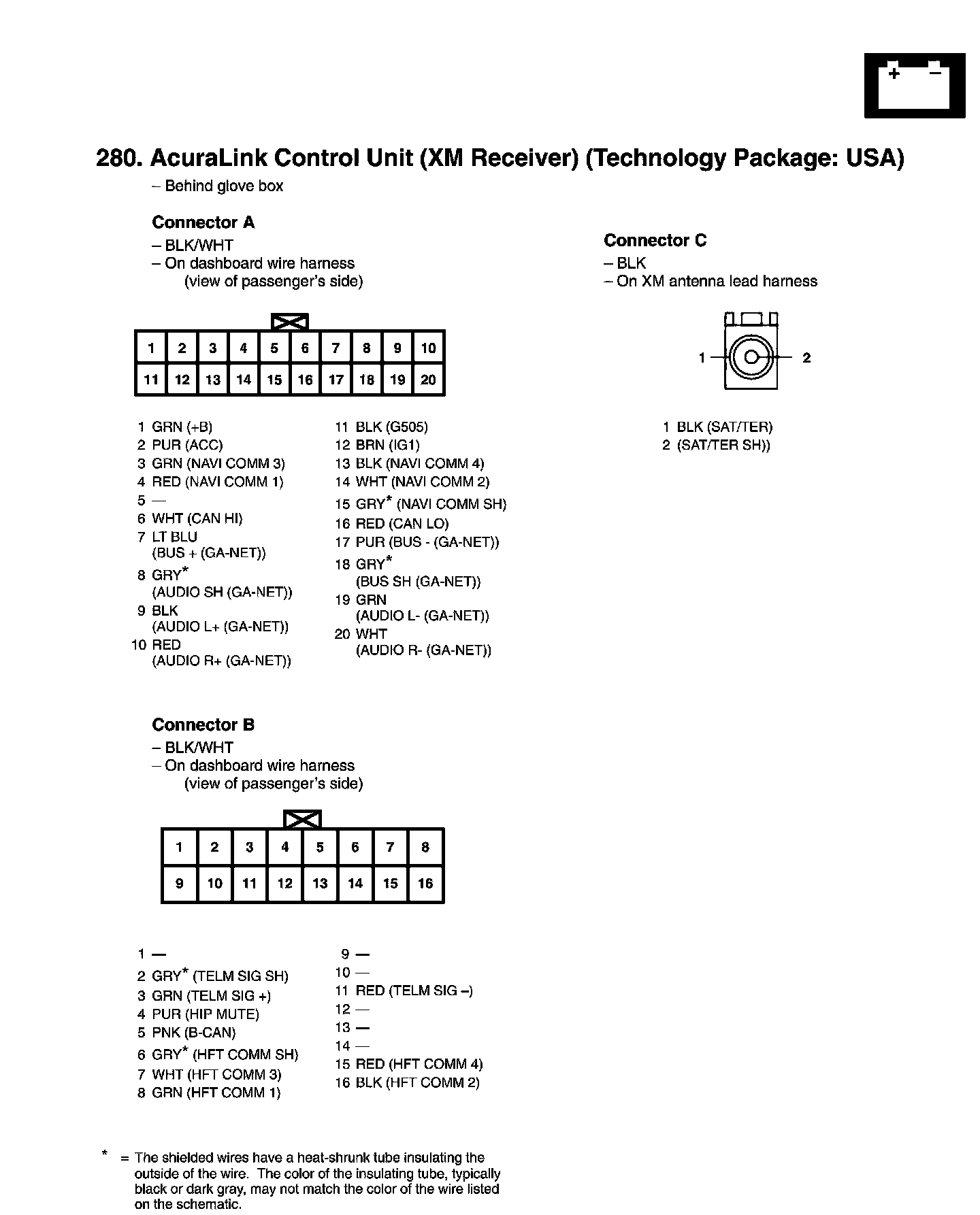 View 280 AcuraLink Control Unit (XM Receiver) Connector View