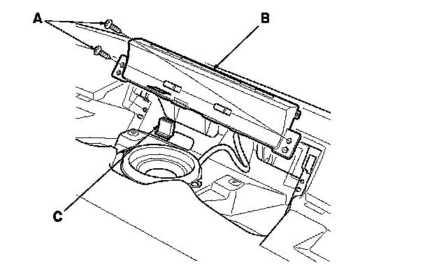 3. Disconnect the connector (C) and remove the audio-HVAC subdisplay unit.