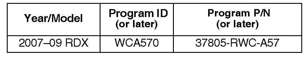 The updated PGM-FI software program ID and P/N are shown below. If the HDS or MVCI is loaded with the latest software, and it displays No Update Needed during the update, the software for this service bulletin is already installed.