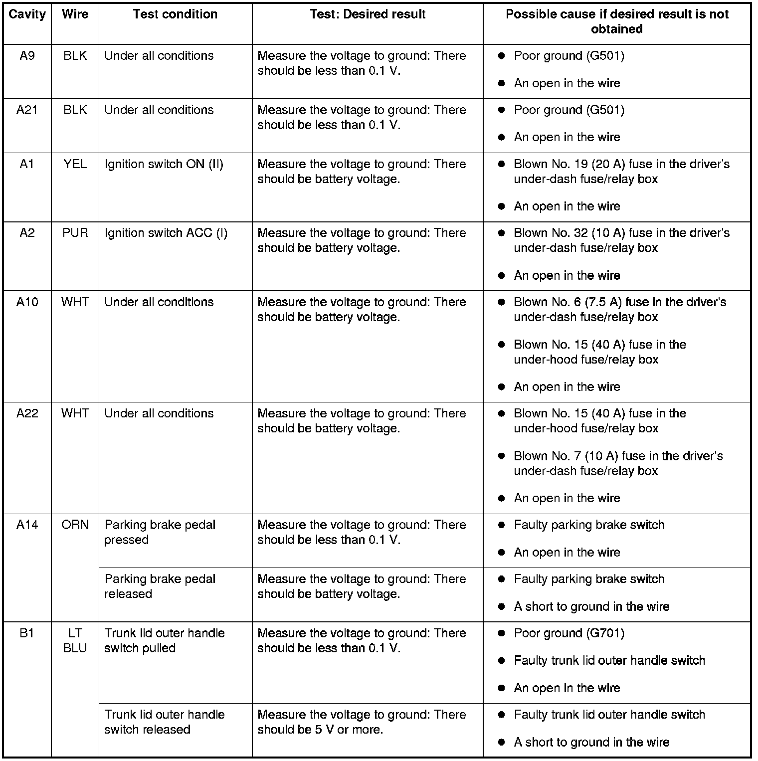 - If all the input tests prove OK, the control unit must be faulty; replace it.