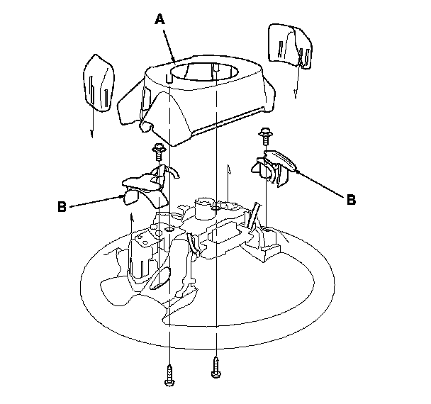 2. Remove the steering wheel rear cover (A) and the paddle shift switches (B).
