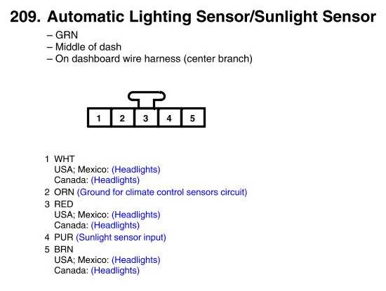 View 209 - Automatic Lighting Sensor/Sunlight Sensor Connector View