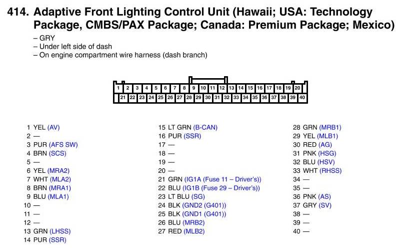 View 414 - Adaptive Front Lighting Control Unit Connector View