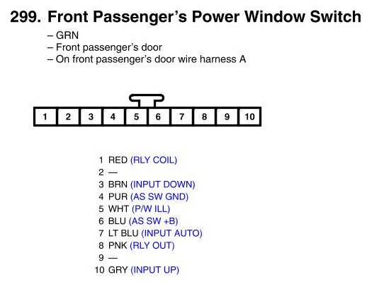 Front Passenger's Power Window Switch Connector View