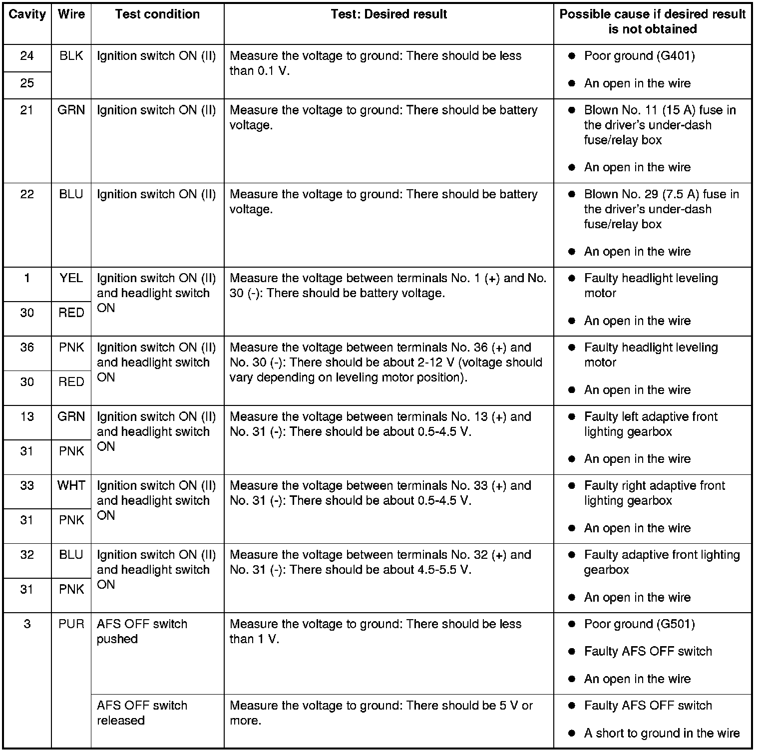 Adaptive Front Lighting Control Unit Input Test (With AFS)