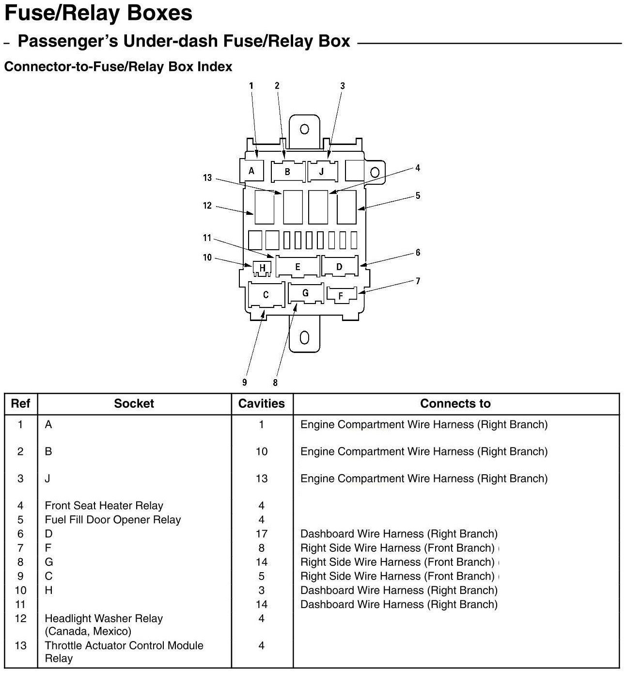 Passenger's Under-dash Fuse/Relay Box - Connector-to-Fuse/Relay Box Index