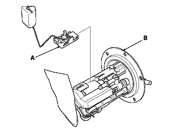 2. Remove the fuel level sensor (fuel sending unit) (A) from the fuel tank unit (B).