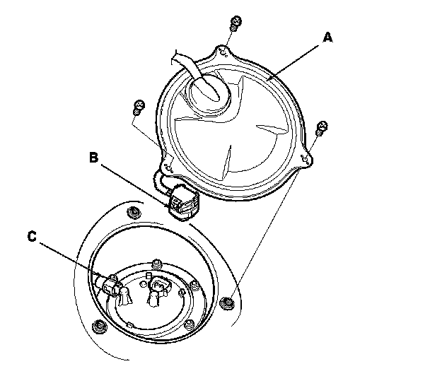 6. Disconnect the quick-connect fitting (C) from the fuel tank unit.