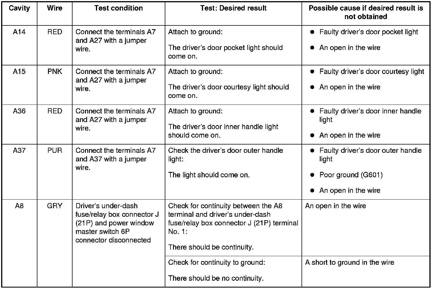 Interior Lights Driver's MPCS Unit Input Test