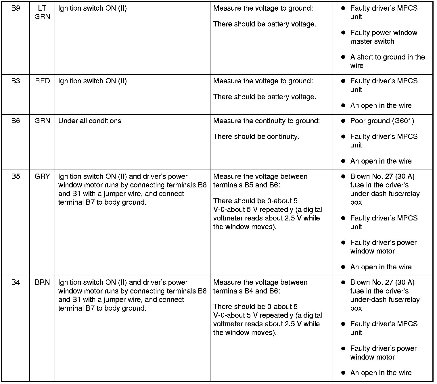 Power Windows Driver's MPCS Unit Input Test