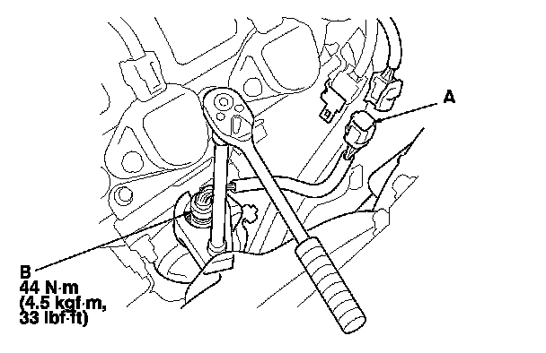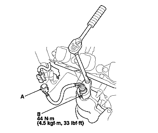 1. Disconnect the rear A/F sensor 6P connector (A), then remove the A/F sensor (B).