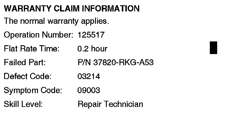 Update the PGM-FI software with the HDS. Refer to Service Bulletin 01-026, Updating Control Units/ Modules.